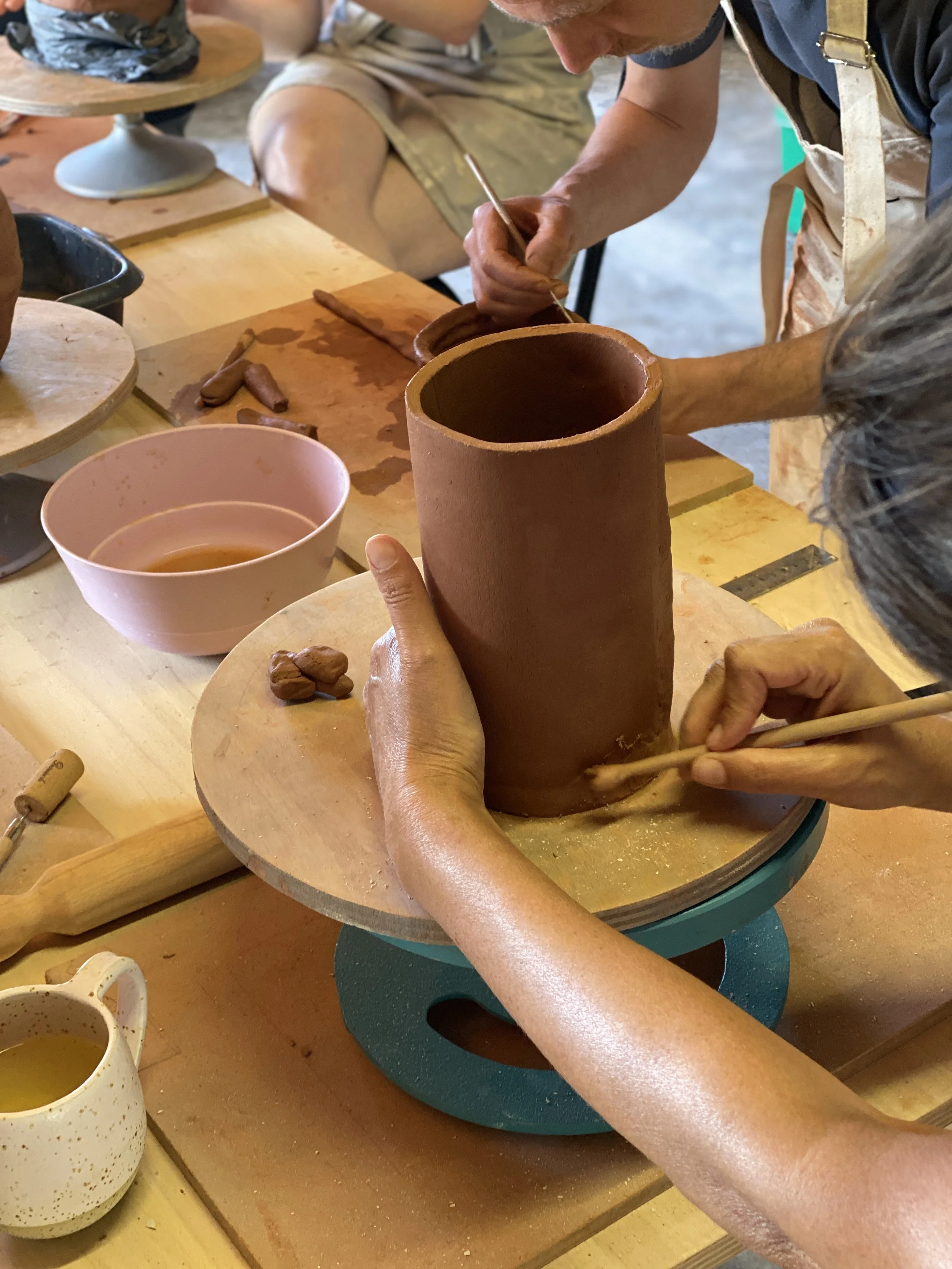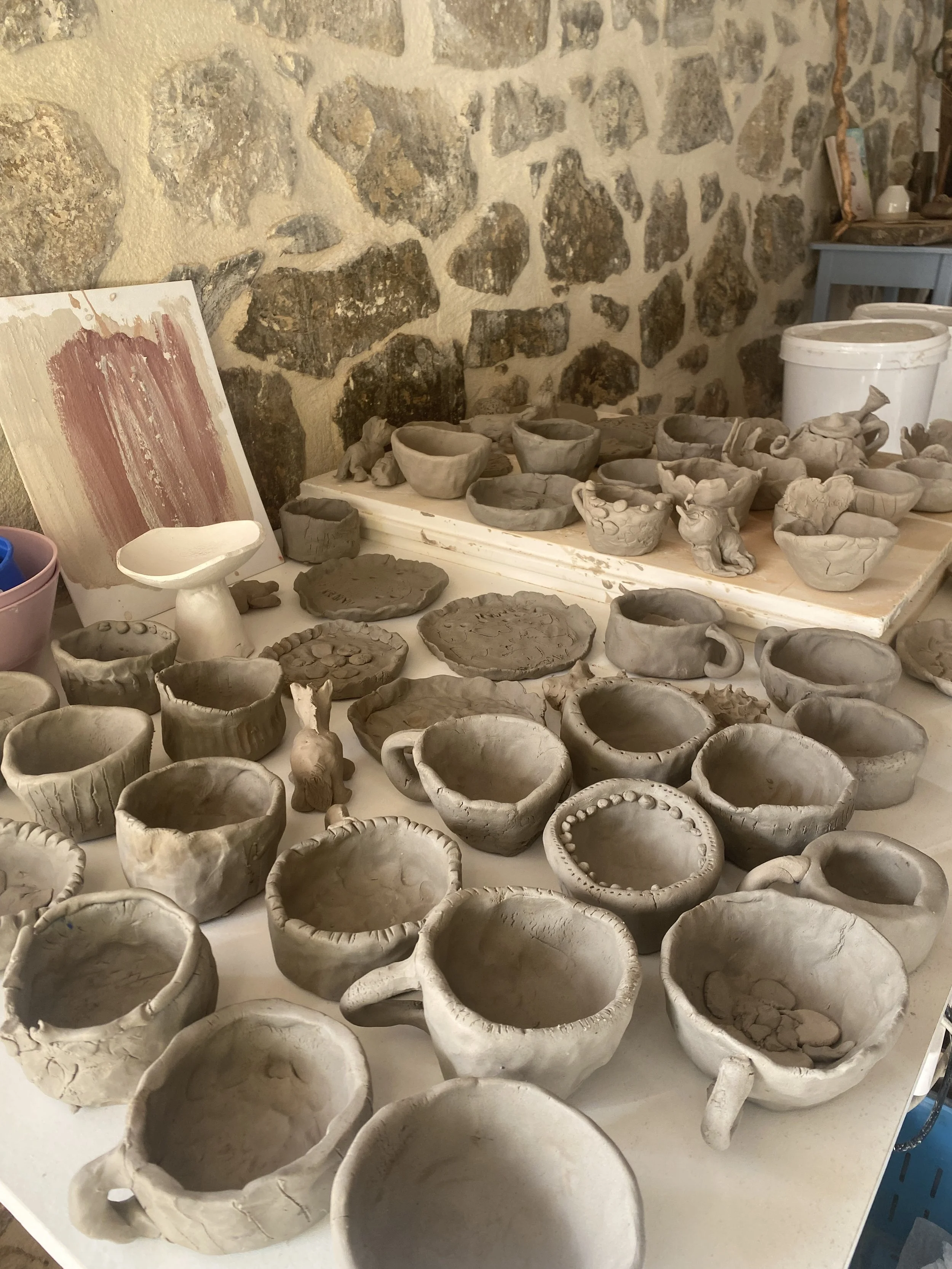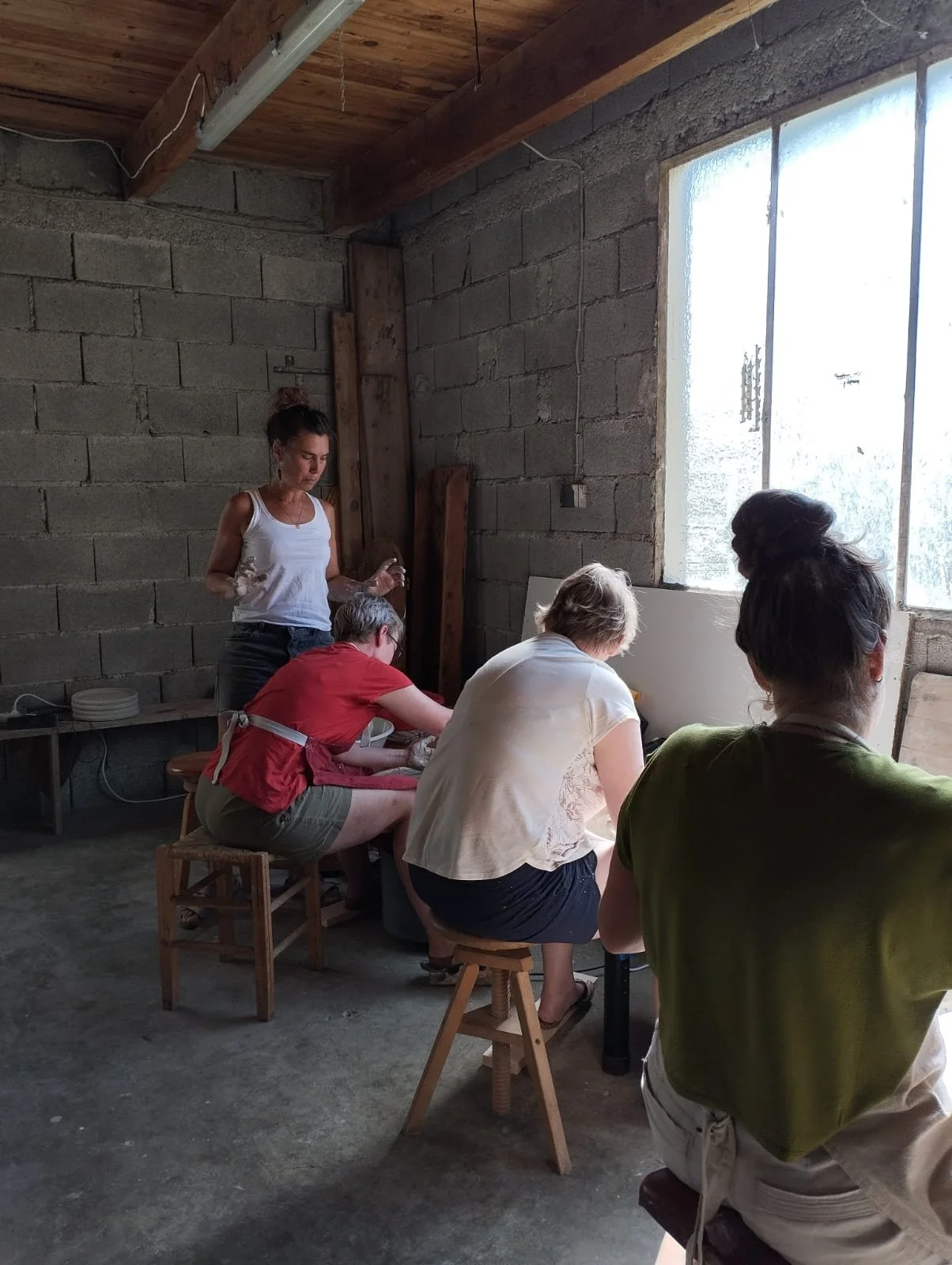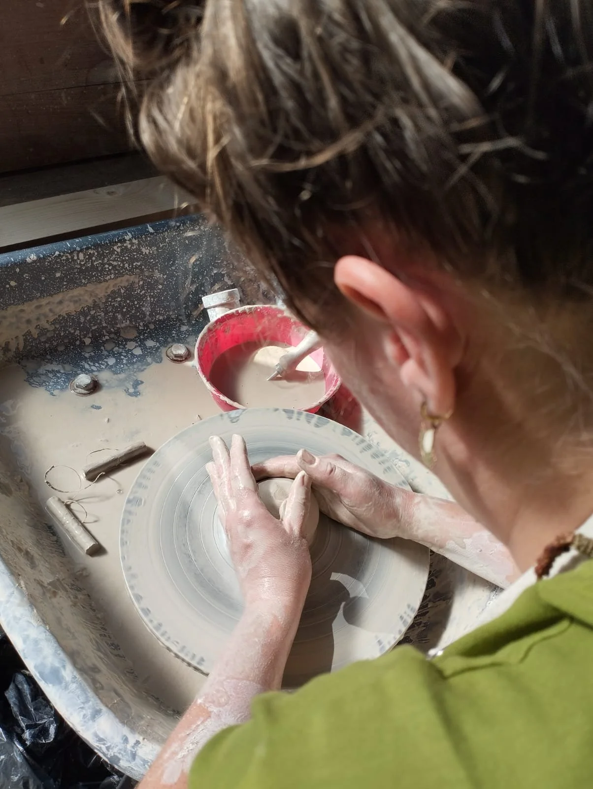 J’y travaille l’argile pour façonner des pièces pour notre quotidien et j’y propose des cours et des stages. L’argile est une matière fascinante que nous manipulons depuis très longtemps: elle est un rappel de notre histoire et guide notre ancrage et notre créativité encore aujourd’hui. Biologiste et céramiste, j’aime combiner mes passions pour offrir un espace de (re)connexion à soi, aux autres et au Vivant. Manipuler la terre c’est apprendre à la respecter et à laisser libre part à notre créativité. L’argile n’a pas de frontière: en effet tous les projets, de la création d'un bol à la conception d’une oeuvre collaborative, peuvent être explorés par petits et grands.